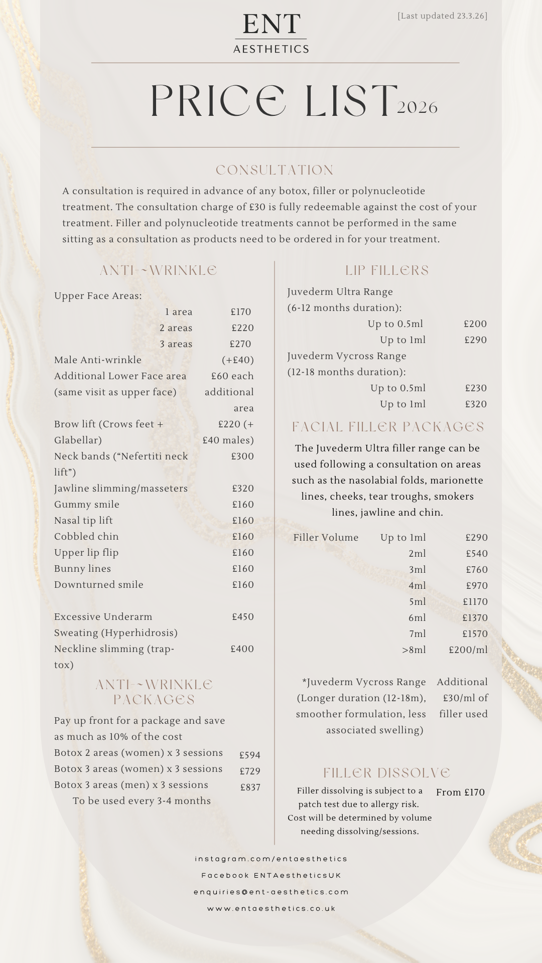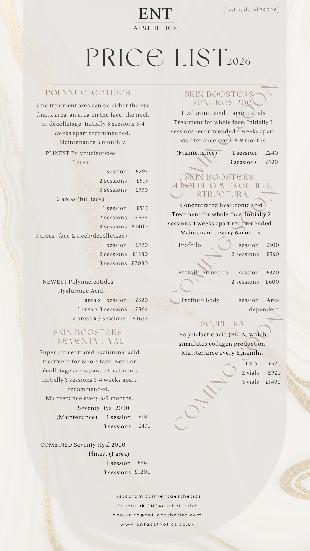Please note, prices may be subject to change after yearly review with respect to inflation, and market costs for products.